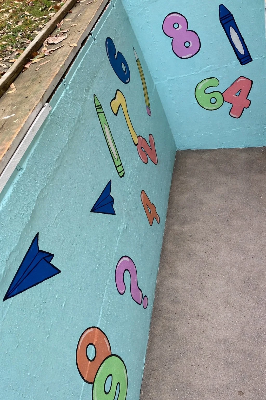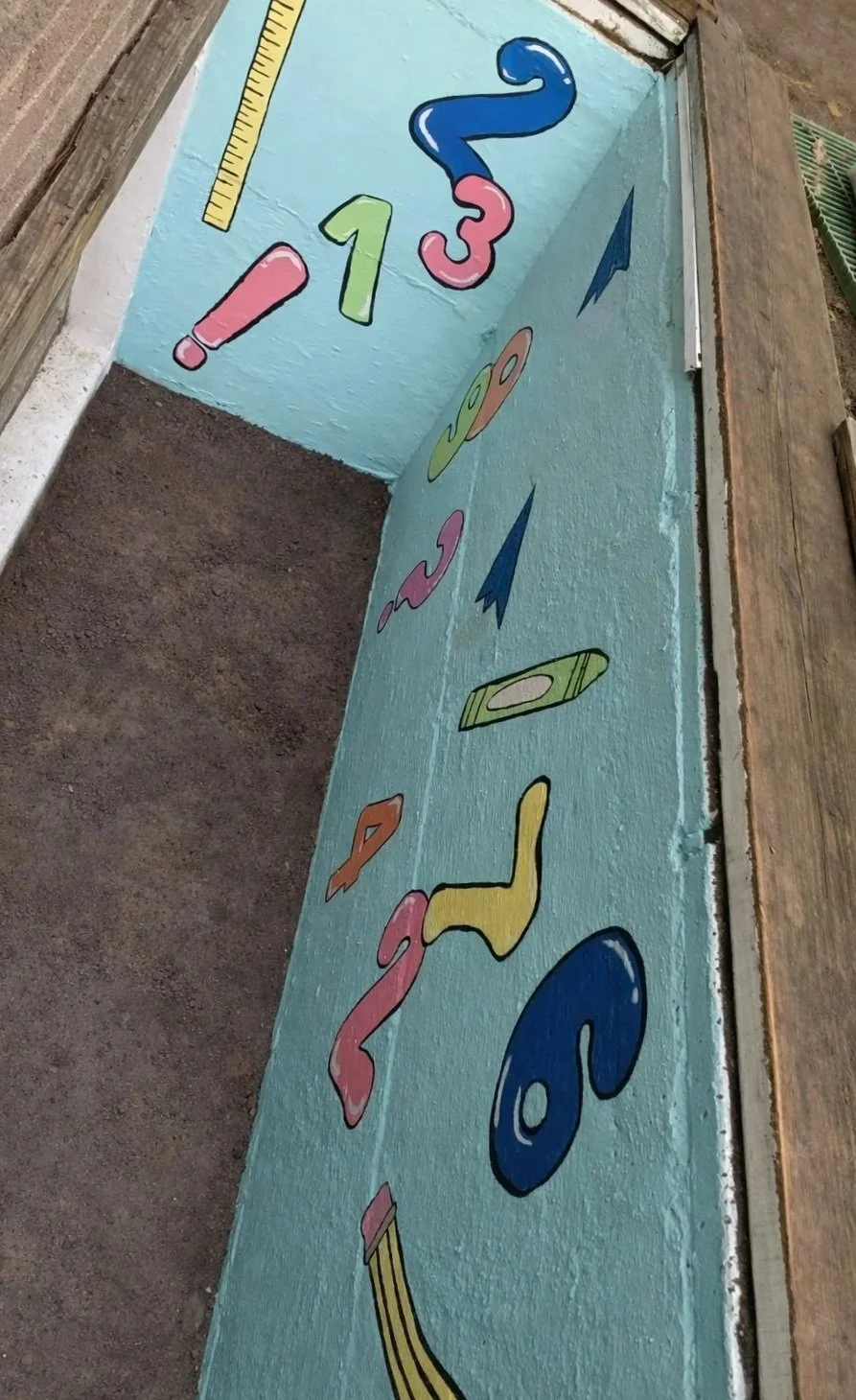 These murals, visable from within the classroom, features recognizable shapes and numerical elements designed to support early learning. The imagery reinforces foundational concepts in a visually engaging way, encouraging familiarity, recognition, and playful interaction while complementing the educational environment.