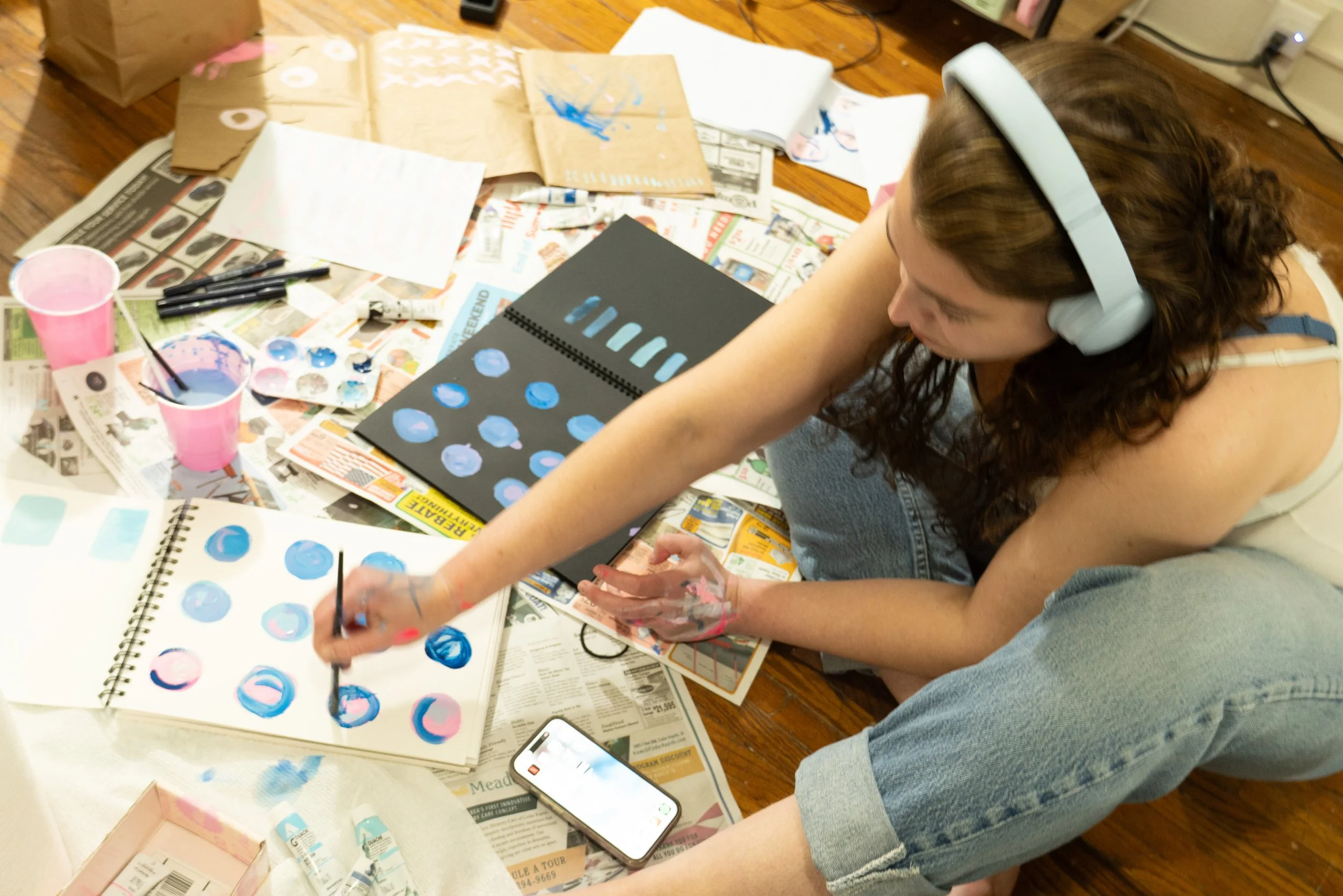 I’m a multidisciplinary artist working with bold color, playful typography, and repurposed materials to create art that invites curiosity and joy. Much of my work centers on collaborating with children and designing imaginative spaces where learning, play, and creativity come together.